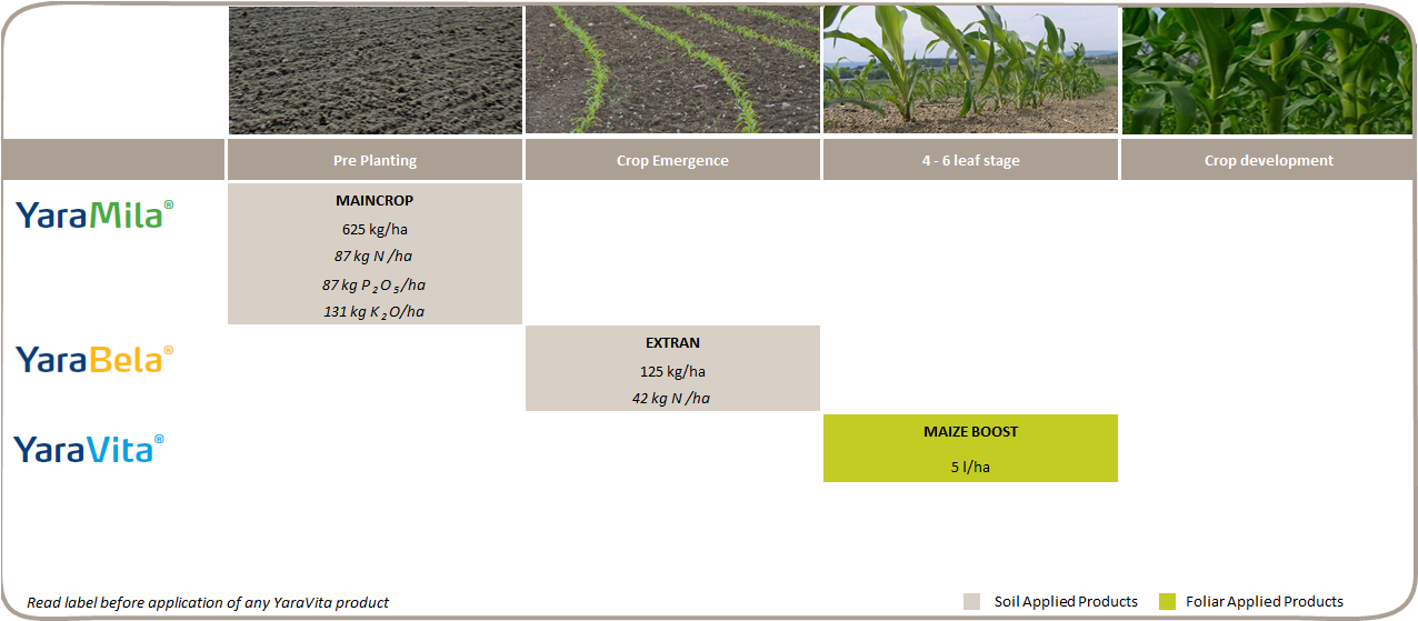 Los programas de fertilización del maíz de Yara son elaborados por nuestros especialistas y podrán ayudarte en obtener excelentes resultados con tu cultivo. Pulsa sobre la imagen para verlo en formato más grande, o lo podrás bajar en formato PDF.
