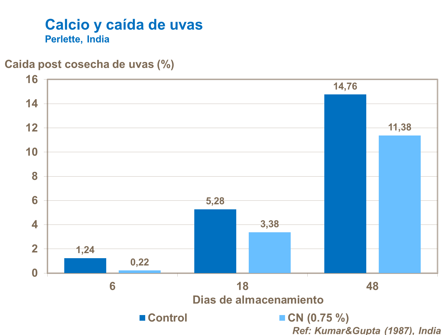 Con la aplicación de calcio se reducirá la pérdida de peso post cosecha y el arrugamiento.